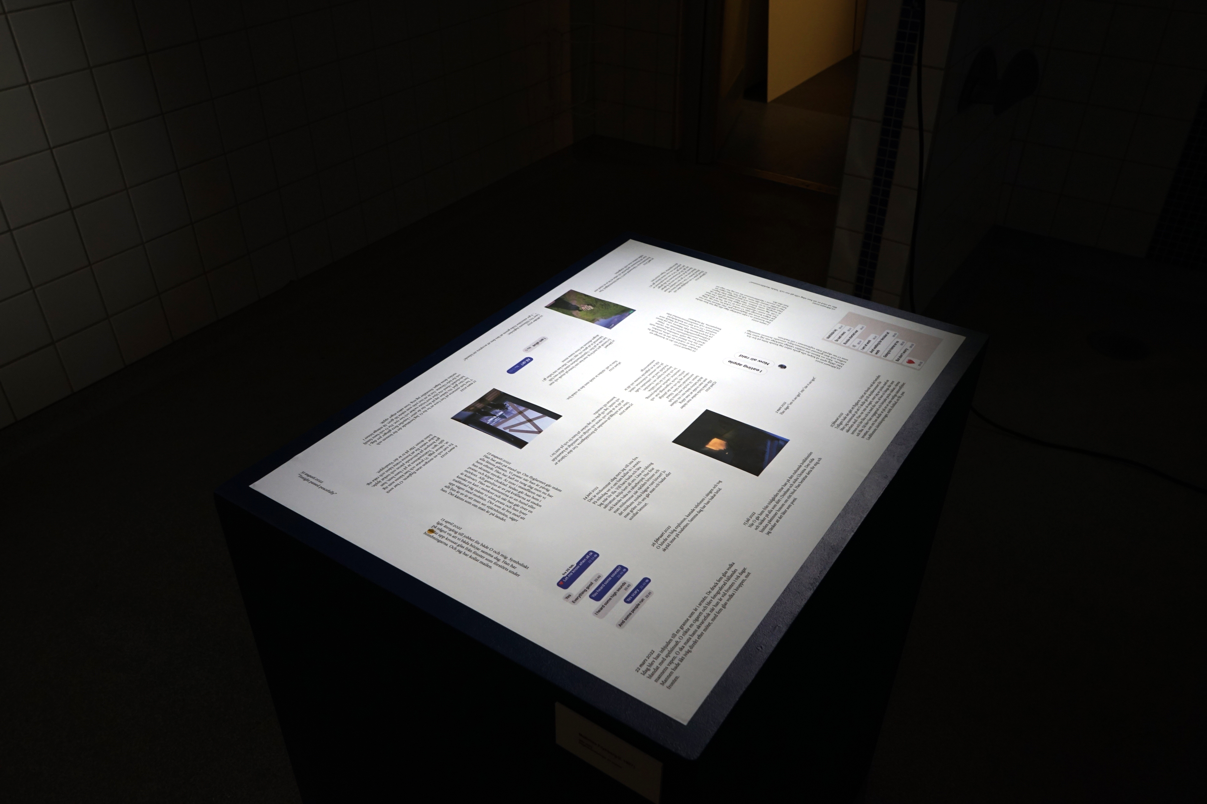 I verket Kiss FM Ukraine spelas direktsänd radio från Ukraina. Radio Kiss – The Best Dace Radio sänder radio dygnet runt och spelar elektronisk medryckande dansmusik. Musiktablån har påverkats av kriget och nyproducerade remixer med stärkande patriotiskt antikrigsbudskap har tillkommit under året. Röster av till exempel Boris Johnsson och Volodymyr Zelensky återfinns i flera remixer. På ValstaKonst bjuds besökaren in till att i realtid dela samma ljudbild som många av de civila som just nu befinner sig i landet – men också föreställningsvis med de soldater vid fronten som söker styrka och andrum i musikens pulserande beats. Att lyssna till Radio Kiss kan ses som en solidarisk handling, en slags inverterad tyst minut, och blir en påminnelse om musikens befriande och stärkande kraft.